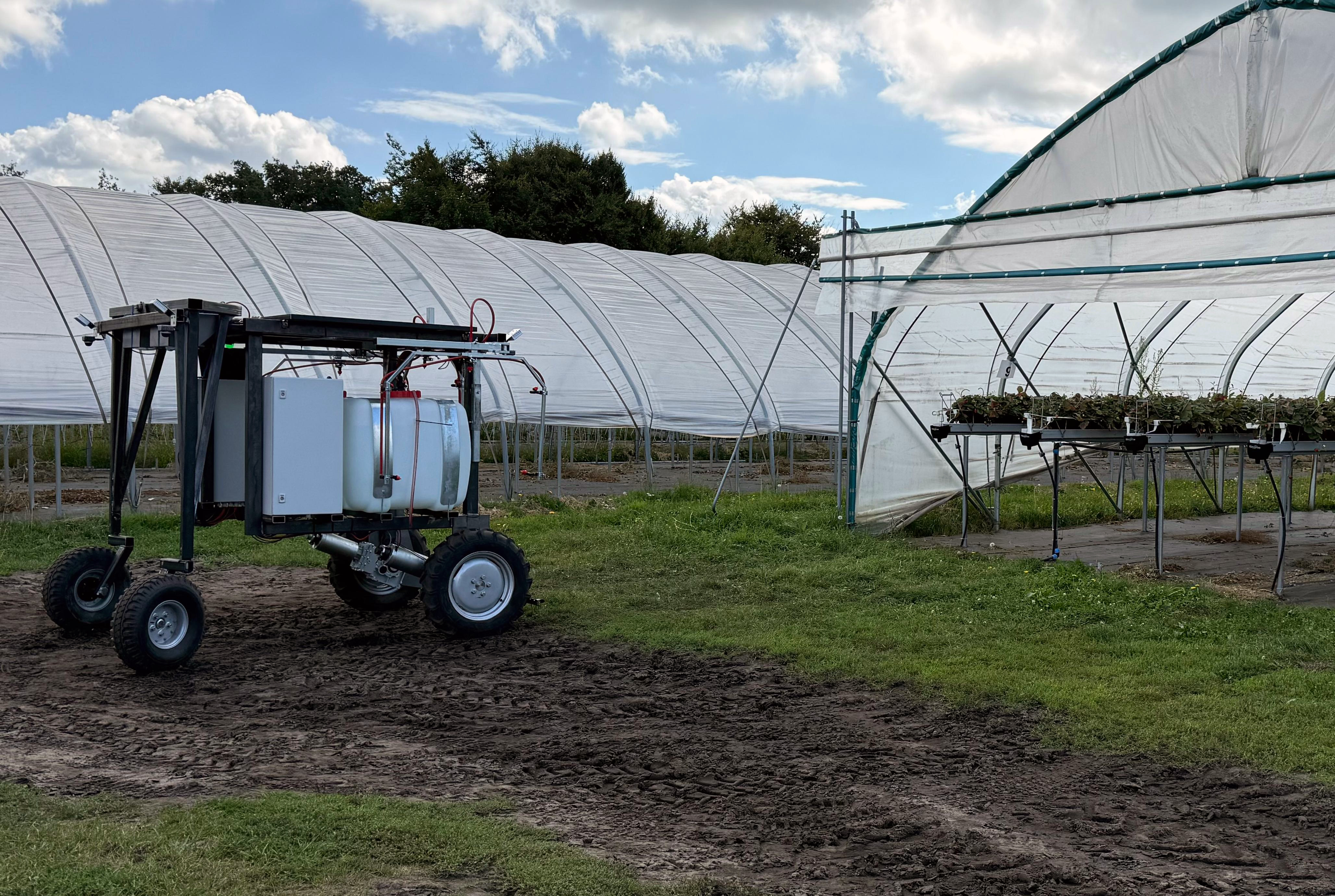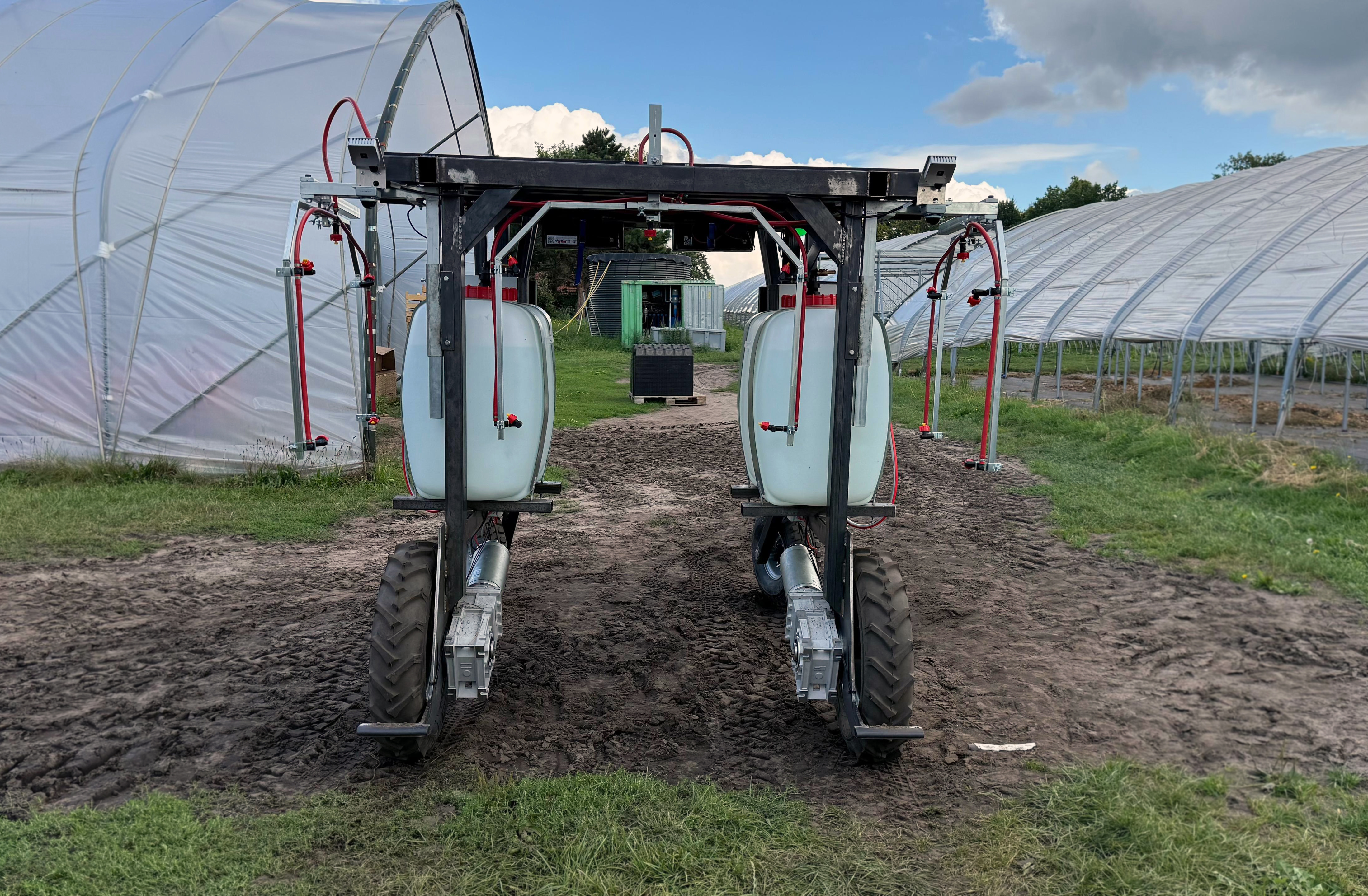 Der Spritzroboter VALERA Cube wurde für den geschützten Anbau und speziell für den Einsatz in Stellagen entwickelt. Er kann gleichzeitig drei bis sieben Reihen behandeln und verfügt über zwei große Tanks, die eine lange Einsatzdauer ermöglichen. Unterstützt durch Solartechnik erreicht er eine hohe Reichweite und arbeitet vollkommen selbstständig auf dem gesamten Gelände. Im Tunnel fährt der VALERA Cube sensorbasiert und präzise – auch nachts völlig autonom, erkennt dabei Hindernisse zuverlässig, stoppt oder umfährt sie selbstständig.